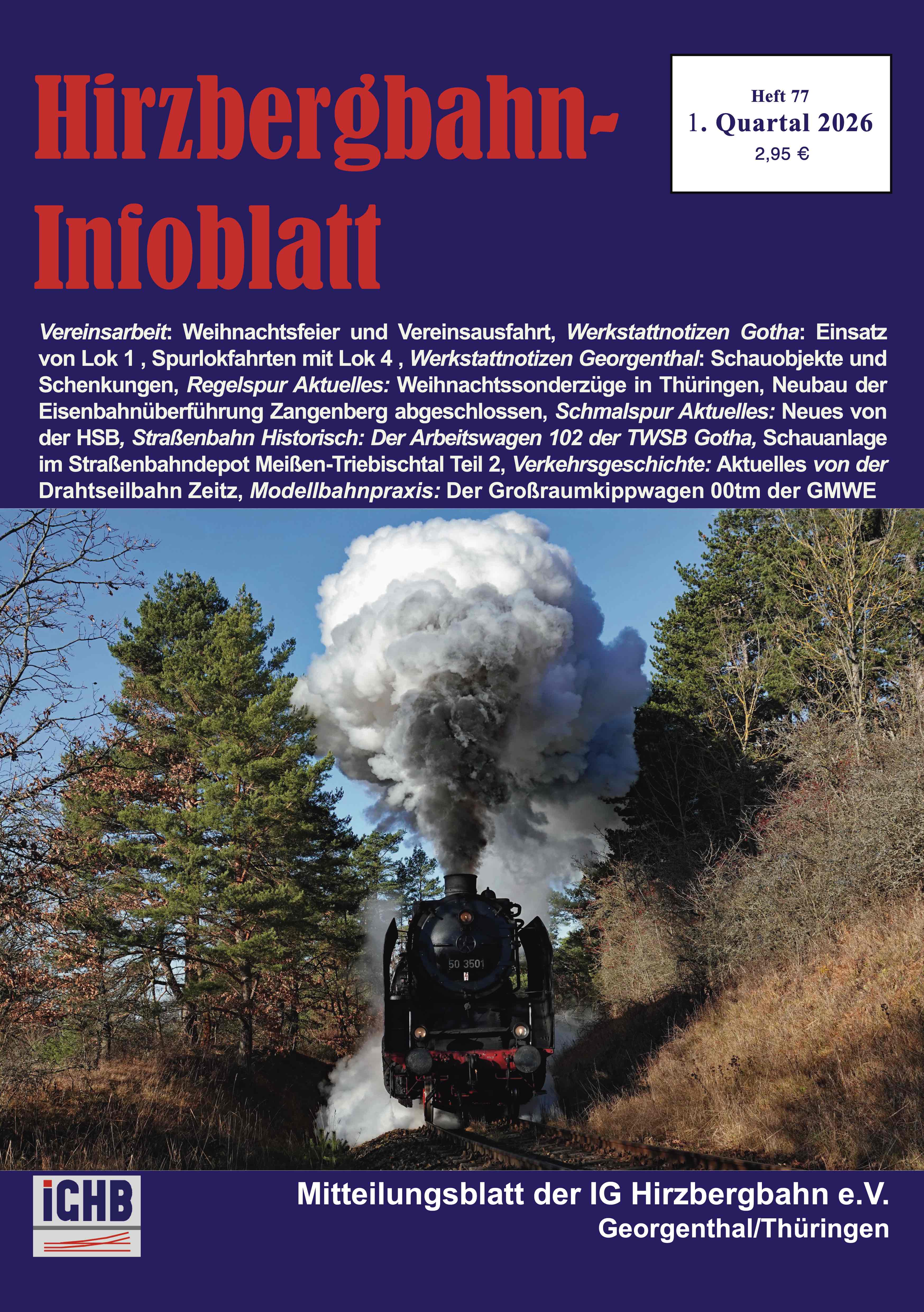 Das neue Jahr hat begonnen. Die IG Hirzbergbahn setzt auch 2026 ihr Engagement für den Erhalt und die Pflege historischer Eisenbahntechnik fort und freut sich gemeinsam mit Mitgliedern, Ehrenamtlichen und Unterstützenden auf ein ereignisreiches Jahr.